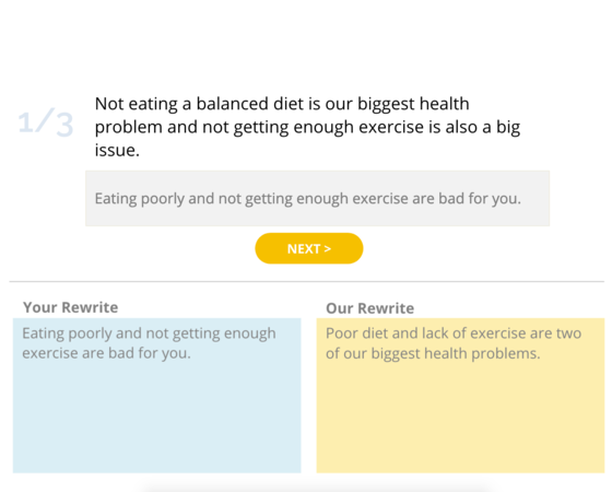 This hands-on exercise is the perfect way to help service and sales teams boost their writing skills. Learners reword statements in their own words and compare them to some recommended wording.