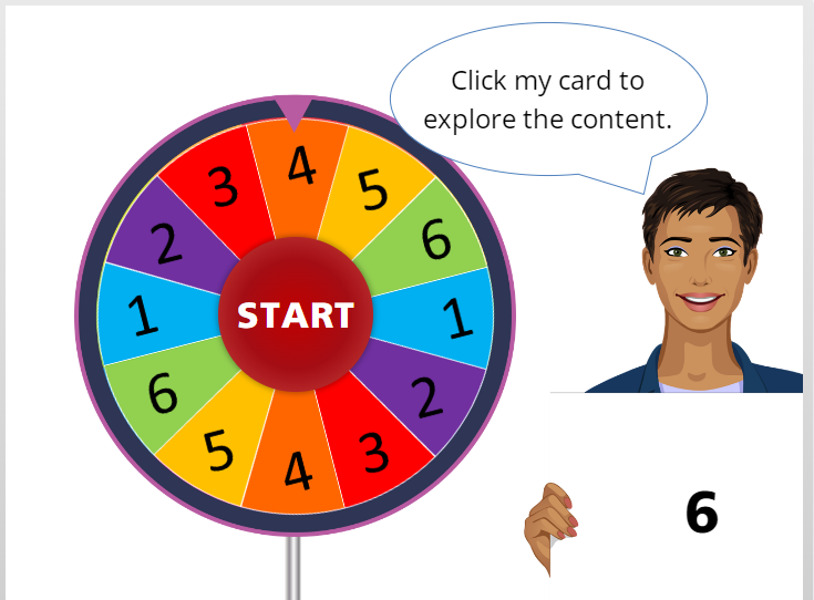 This spinning wheel template was made entirely in Storyline 360 using dials and variables. For a behind-the-scenes look at how to build a spinning wheel, check out this discussion.