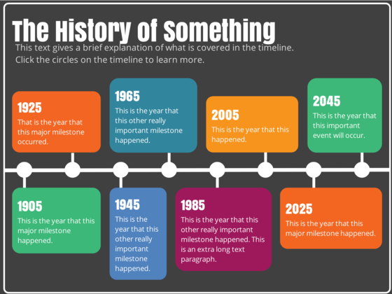 Download the file, swap out the text, and adjust the colors to quickly and easily make this interactive timeline template your own.