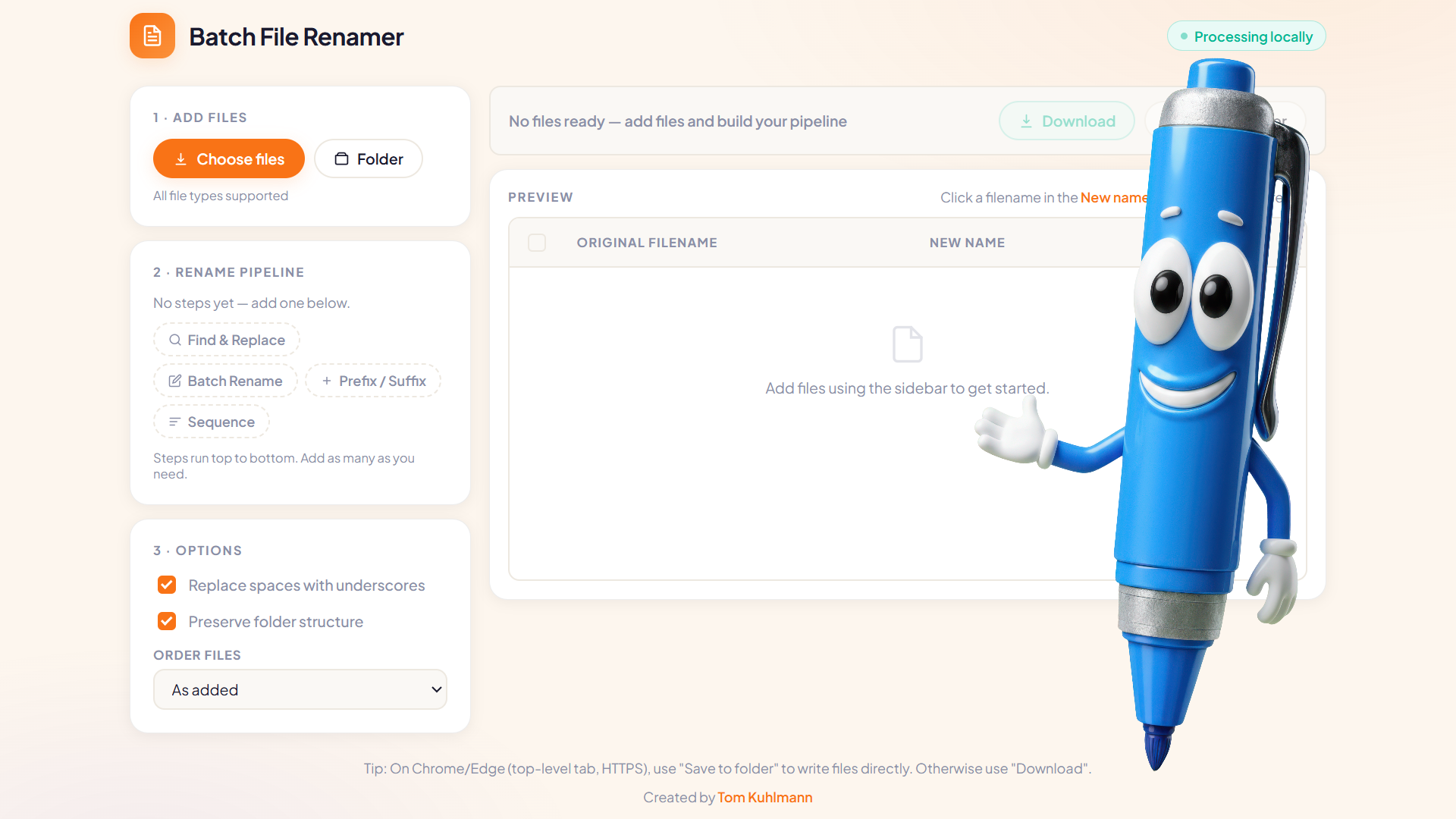 I was looking for a file renamer that was easy to use and decided I'd try my hand at vibe coding one. It's a simple HTML file that runs locally from yoru device. It works well and if you wanted to tweak it you can always upload the html as a starting place and vibe code your own features.