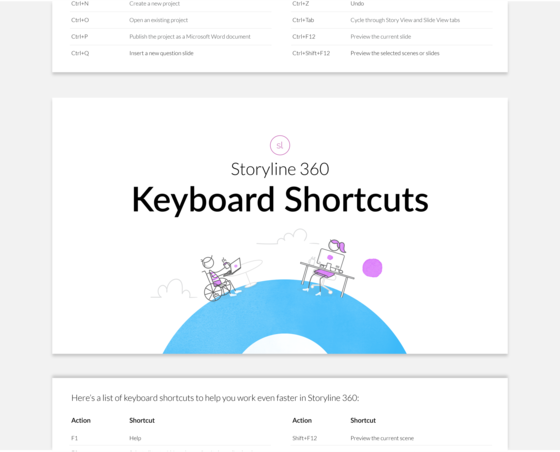 Want to save time and work more efficiently? Download this Storyline 360 keyboard shortcuts cheat sheet to help you work even faster. This PDF also includes instructions on how to create your own keyboard shortcuts and tips on testing your course for keyboard accessibility.