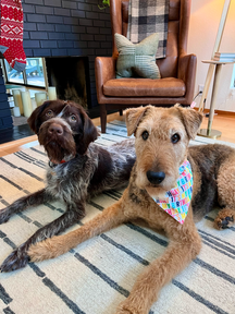 I'm located in Bellingham, WA 🌲 but I'm a native Texan at heart. I share my home office with two cuties, Basil (airedale terrier) and Remi (wirehaired pointer). I'd love to see photos of your pets, as well!