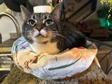 This is Penny. Her favorite things to do are sleep, eat, and get pet.
