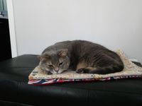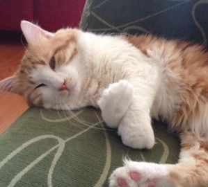 This is our family cat, Licorce, who seems to find the weirdest places to take a nap.