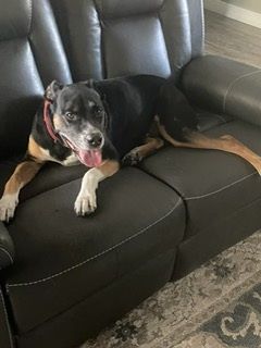 Hi Nancy! I'm not sure what he is. I think he has pit, lab, mastif, and probably some other things in him, but regardless, he's a lovable boy.
