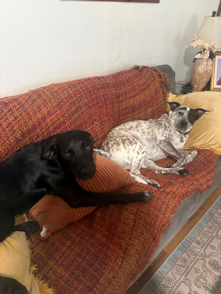 These are my fur babies and co-workers Millie (Australian cattle dog mix) and Sky (lab mix)