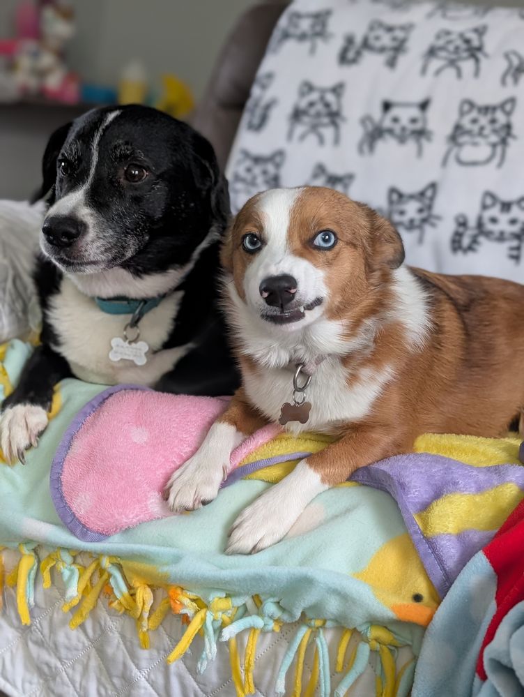 Attached is a picture of my two corgi-mix pups. Cooper and Peaches. In my spare time, I foster puppies and pets rotate in and out of my home regularly. Not pictured are my cats Penelope and Little One.