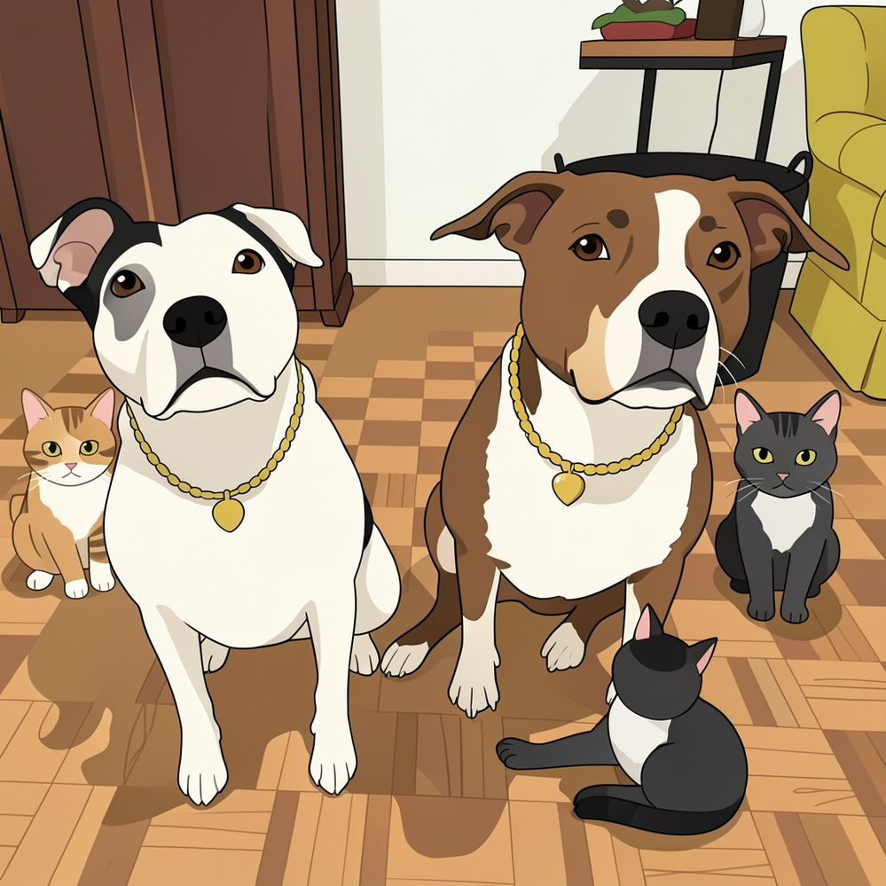 I have 5 pets at home but they're never in the same place at the same time. I asked the AI image generator on FreePik to combine their pictures into one. This was the result after three attempts!😆
