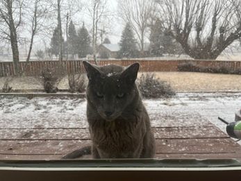 We have two cats. Opie loves lasers, snuggling and standing in front of my computer. And Gary thinks he is a jaguar spending most of his time outside.