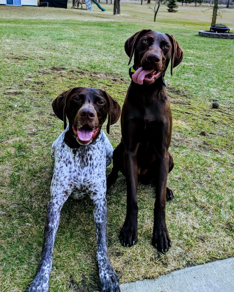 Below are my two German Shorthair Pointers, Bella (11) on the left and Coda (8) on the right. While they generally sleep 75% of the day, the 25% that they are awake is pure chaos!