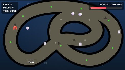 For this entry, I built a small racing game where learners control a shrimp around a race track with their mouse. They have to get as many laps as they can while dodging plastic waste.