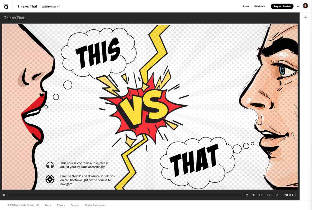 A few years back (before AI voices), I had the opportunity to design a series of comic-themed templates for a virtual conference. The goal? To prove that e-Learning can be as engaging as a graphic novel. This particular layout is one of my favorites from that collection. Enjoy!
