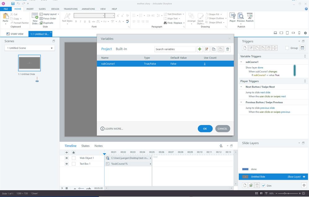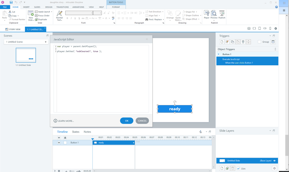 player.SetVar( "subCourse1", true );- Daughter: then publish to web and rename "story.html" to "index.html"