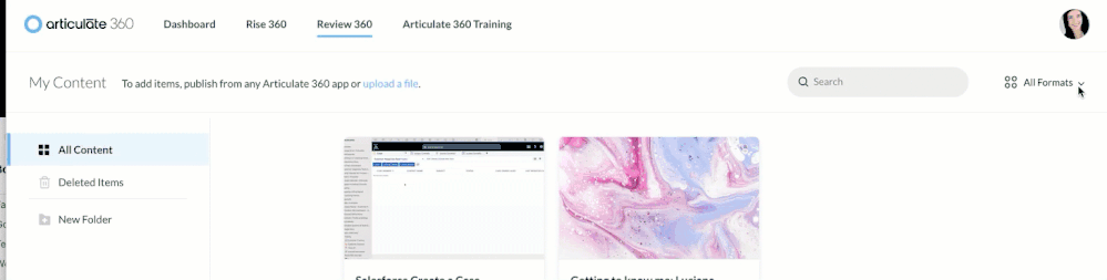 2) In Chrome, filters/formats options has no effect, probably because ALL of my content is (currently) SL360.