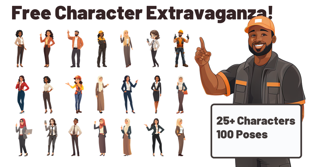 My goal was to give away a free character every day through August as I practice using AI prompts. Here is a link to the back-to-school character pack that includes 25 characters (including 100 poses) with links to the other 19.