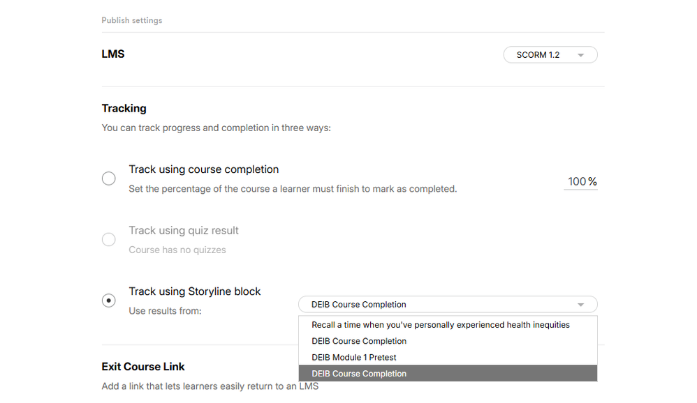 I thought about putting another storyline block at the end of the course content, but it doesn't seem that there is a way to track more than one option.