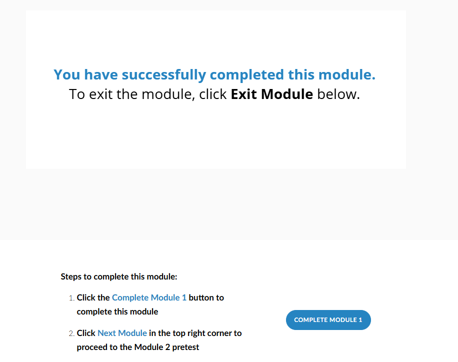 I suggest you remove the instruction about clicking "Next Module." That should only be shown in the final lesson that has the trackable SL block.