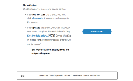 I created a course utilizing this feature for a course that has a pretest/test-out option. The test out works great for those who read through the instructions and don't go through the course content...
