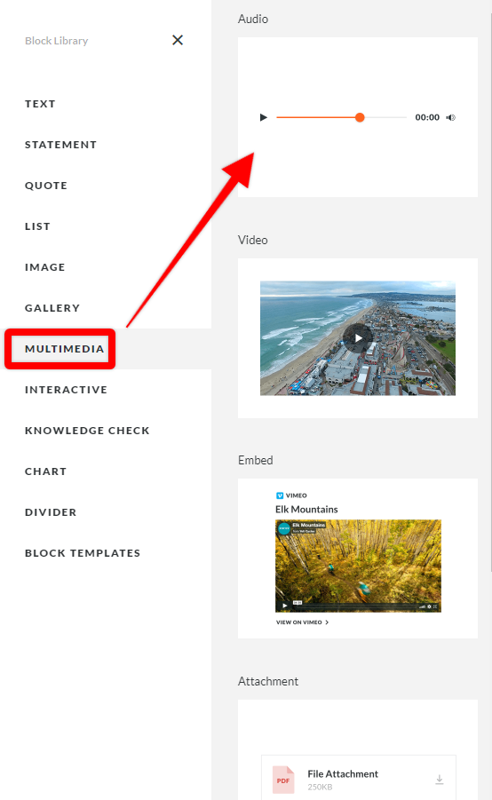 You can also upload audio into some interactive blocks, such as the Process block and Timeline block.
