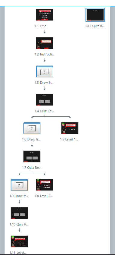 I am creating an adaptive test to evaluate the mastery levels of our field technicians in multiple topics. Each adaptive test will have a single topic, but multiple levels. Each of the three levels has a question bank. The way I have it set up is the learner will answer 15 randomly drawn questions from level 1 question bank. If they pass with 80% they are automatically given 15 random questions from Level 2 question bank. If they don't pass, they will be given their results and the test is over. The same happens at Level 2. If they pass they will move on to level 3 test draw, but if they fail their test will be over and they will be given their two level scores. After the third test bank, the learner will get all three scores. Currently, these functions are working correctly. The scores are even showing up color coded (red <60%, yellow 60%-80%, green >80%). What I need is to either, get all three scores OR get the score and test name from their LOWEST score to be reported to our LMS. This would tell us what level Their test ended and what level of mastery they are at. Any ideas?