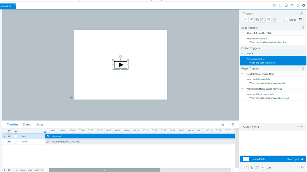 I want to add an audio file to my slide and when I preview the slide, the audio automatically starts playing when the timeline reaches it. But I don't want the audio to play automically. I want it to be paused and have controls of play to be clicked for the audio to be played and a seek bar that is used to go forward or backward in the audio. I saw a 10 year old discussion where the suggestions were convert mp3 to swf or mp4 but none of these work for me in Storyline 360. What should I do to have something like this: