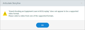 Hello, I edited a video file in Replay and want to insert it in Storyline 360 and the attached error message appears. It seems that it does not accept the Replay format. Please help.