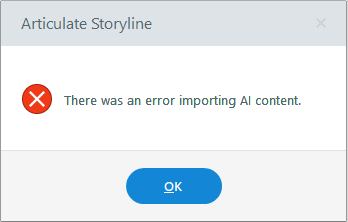 While using Storyline I tried creating a quiz based on a slide i have, but it keeps throwing an undefined error, just stating that "There was an error importing AI content".