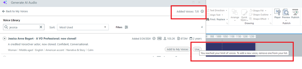 AI Voice - Added Voices showing zero as the limit of my voices; cannot use new voices