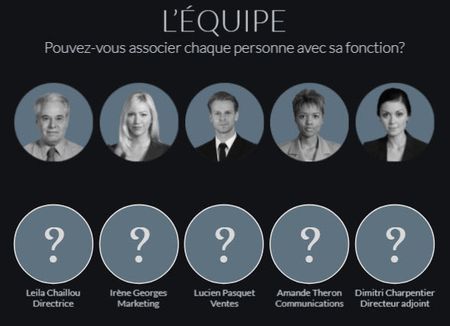In this project, the user has to drag the photo of each person to its correct location below.