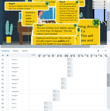 I've developed a single Storyline slide with a complex set of animations. When the timeline plays, the slide zooms in (using Zoom Regions), pauses, shows vector images and text, and the...