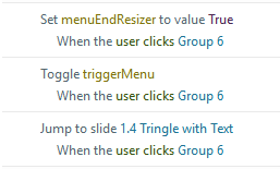 you'll see that before leaving the current slide, a request is made to end the resizing function (by setting the menuEndResiser variable to true and then toggling the triggerMenu variable). You need to complete these two steps before moving to the next slide, otherwise the resizer function creates an error. For instance, if you place a new button on the slide with these two triggers attached, and then click it before selecting a new slide from the side menu then it will work properly.
