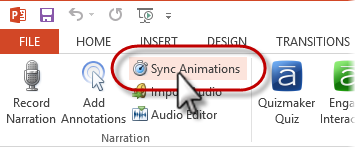 Hi there,I'm having the same issue - where exactly is the Sync Animations button?? That might be the fix I need for my presentation.