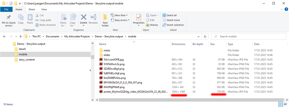- import a big png (width/height) into the course and scale it in storyline, then publish the course -> png is NOT resized anymore -> so the file size can increase significantlyexample: