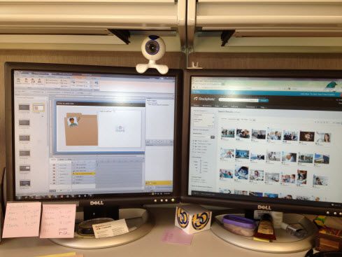 I've found that two monitors really help for webinars where one screen is the live, presentation screen and the other is used to stage examples or talking points.