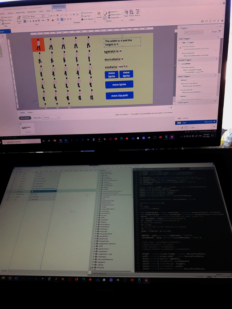 I cannot work with small screens anymore. Used to 2 bigger screens...the lower one is a Wacom screen to use as tablet when drawing. No use in Articulate tools, but can't miss it when creating design and art. Often have the timeline on that one...as my Javascript code in Sublime Text.