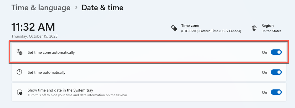 Can you confirm if you have enabled the ‘Set Time Zone Automatically’ option?