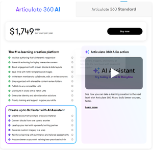 With the recent release of AI-powered features, a new pricing model is now available for Articulate 360: Let’s take a look at what this actually includes: St...