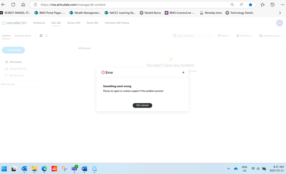I appreciate your patience while the Rise 360 issue is ongoing. I’m happy to confirm that Rise 360 access has been restored and is fully functional. We have updated the status here from Monitoring to Resolved.
