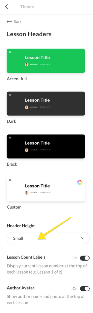 Now you can select a header style and control the height of the header from the Theme > Lesson Headers page.