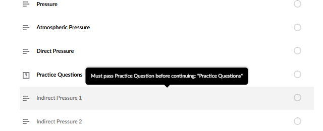 The label you’re looking for is “Must pass quiz before continuing.” To find it quickly, use the Find function: