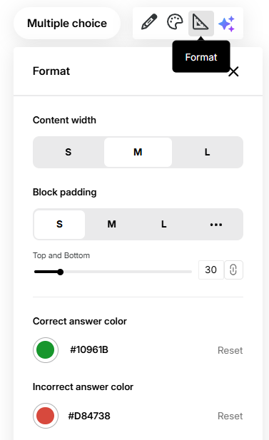 If you don't want to use the theme color for your questions (Knowledge Checks or Quizzes), you can select different colours.