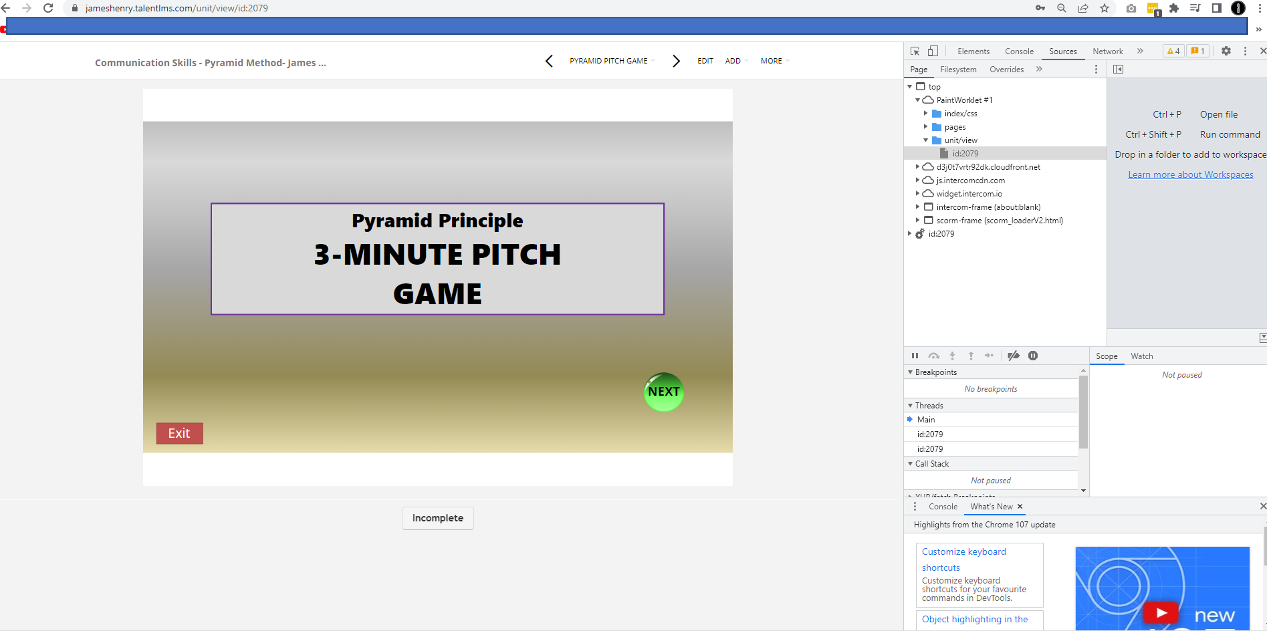Here is what "F12" shows me on the Talent LMS page for the module.