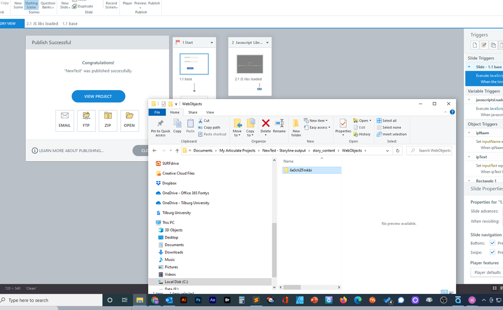 In the zip added is the Storyline fixed and ready and a folder the WebObject points too. If you want to use this in another Storyline you need to copy the scene 2 'Javascript Libraries' to your project... and get the first 2 triggers on the startSlide. Also you need to be aware of the way WebObjects work. When publishing the first time ( as Web ) you need to open up your local folder and go into the WebObjects folder to get the name/number of it...