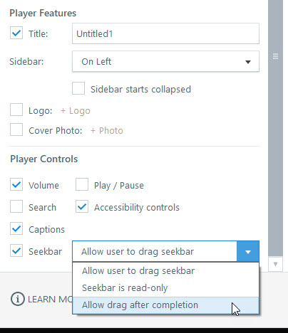 As for the scrub back and forth: in SL360, you can set the timeline to "allow drag after completion," which means that the learner can't do anything but sit through the video until it completes - at which point he or she can revisit whatever is desired. Again, assigning a variable related to point values could be used here, too.