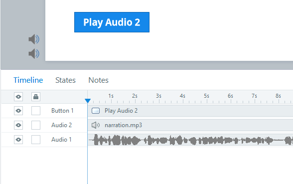 The waveform should appear when the audio is set to play automatically when the timeline starts. If you're using a trigger to play the audio, then you'll see the audio icon instead of the waveform. I've attached a screenshot of both methods.