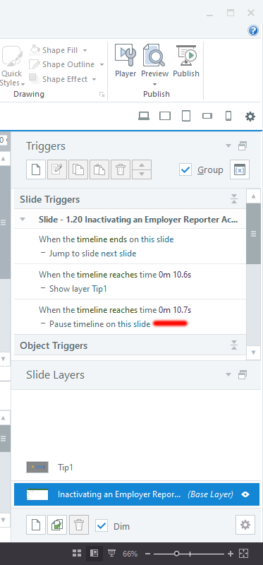 Fixed: Audio from the base layer wouldn't play in published video output when slide layers paused the timeline of the base layer or hide objects on the base layer.