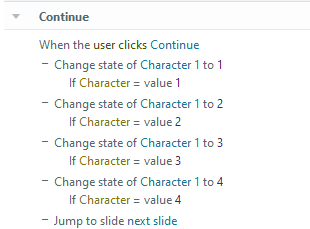 Hi all, I'm working on a scenario which allows the learner to choose their own avatar (storyline character). I used this article as my guide and it has worked great except for one thing. When a slide begins, there is a millisecond where the character appears in its "normal" state before it changes to the selected character. I have attached a stripped back example to show you what I mean.