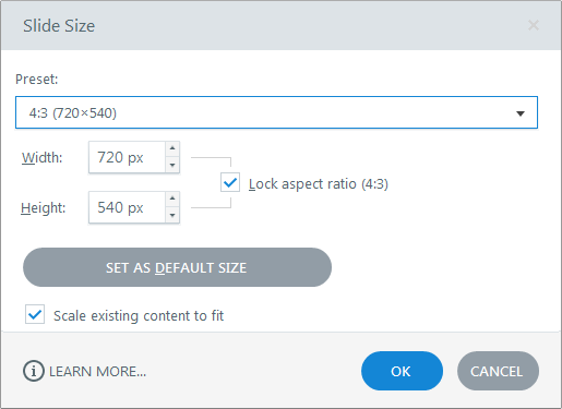 your slide size (720x540) is to small - the background pictures are exported with size 720x540 Pixel