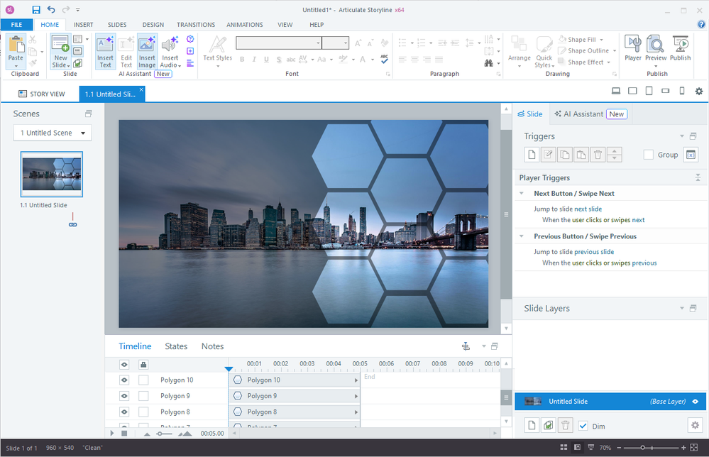 I have built my slide with several hexagon shapes set to background fill. In the design view it looks the way I want it. However, when I switch to preview the effect is broken?