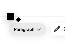 Those black shapes you see when hovering near the block type dropdown are normal UI markers in Rise. They appear when a block type has more layout options, like Paragraph or Quote. They simply show where you can open the dropdown to change the layout and disappear once you move your cursor away.